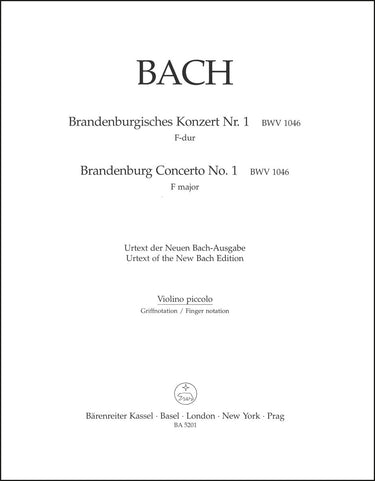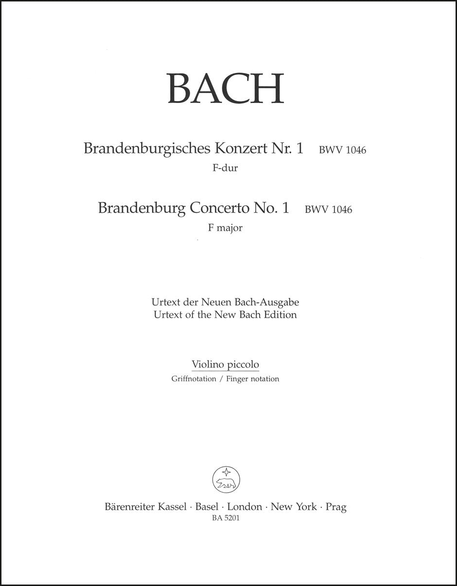 **Title**: Brandenburg Concerto No. 1 and Original Version "Sinfonia" in F major BWV 1046, BWV 1046a | **Comments on Version**: finger notation - notated in D major, sounds in F major | **Composer / Author**: Bach, Johann Sebastian | **Editor**: Besseler, Heinrich | **Edition Type**: Part, Urtext edition | **Scoring/ Instrumentation**: Violino piccolo | **Binding**: Stapled | **Weight**: 30.0 g | **Format**: 32,5 x 25,5 cm | **Pages**: 8 S. | **Language**: EN | Sample: https://data.baerenreiter.com/NB/BA/BA05201_76_9790006502936_nb_lrg_01.jpg
