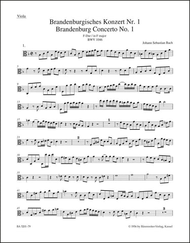 **Title**: Brandenburg Concerto No. 1 and Original Version "Sinfonia" in F major BWV 1046, BWV 1046a | **Composer / Author**: Bach, Johann Sebastian | **Editor**: Besseler, Heinrich | **Edition Type**: Part, Urtext edition | **Scoring/ Instrumentation**: Viola | **Binding**: Stapled | **Weight**: 33.0 g | **Format**: 32,5 x 25,5 cm | **Pages**: 8 S. | **Language**: EN | Sample: https://data.baerenreiter.com/NB/BA/BA05201_79_9790006502950_nb_lrg_01.jpg