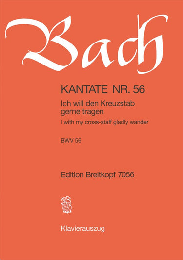 Cantata BWV 56 “I with my cross-staff gladly wander” | 19th Sunday after Trinity | B,mix ch,orch | solo: B – choir: SATB – 0.2.ob da cac.0.0 – 0.0.0.0 – str – bc | Choir | Chorus | Chorus (with soloists) and piano | 20' | Baroque | Cantata | Piano/Vocal Score | piano vocal score | | Taubmann, O/Ettler, C (KA) | 20 | German / English | Softcover | 19 x 27 cm