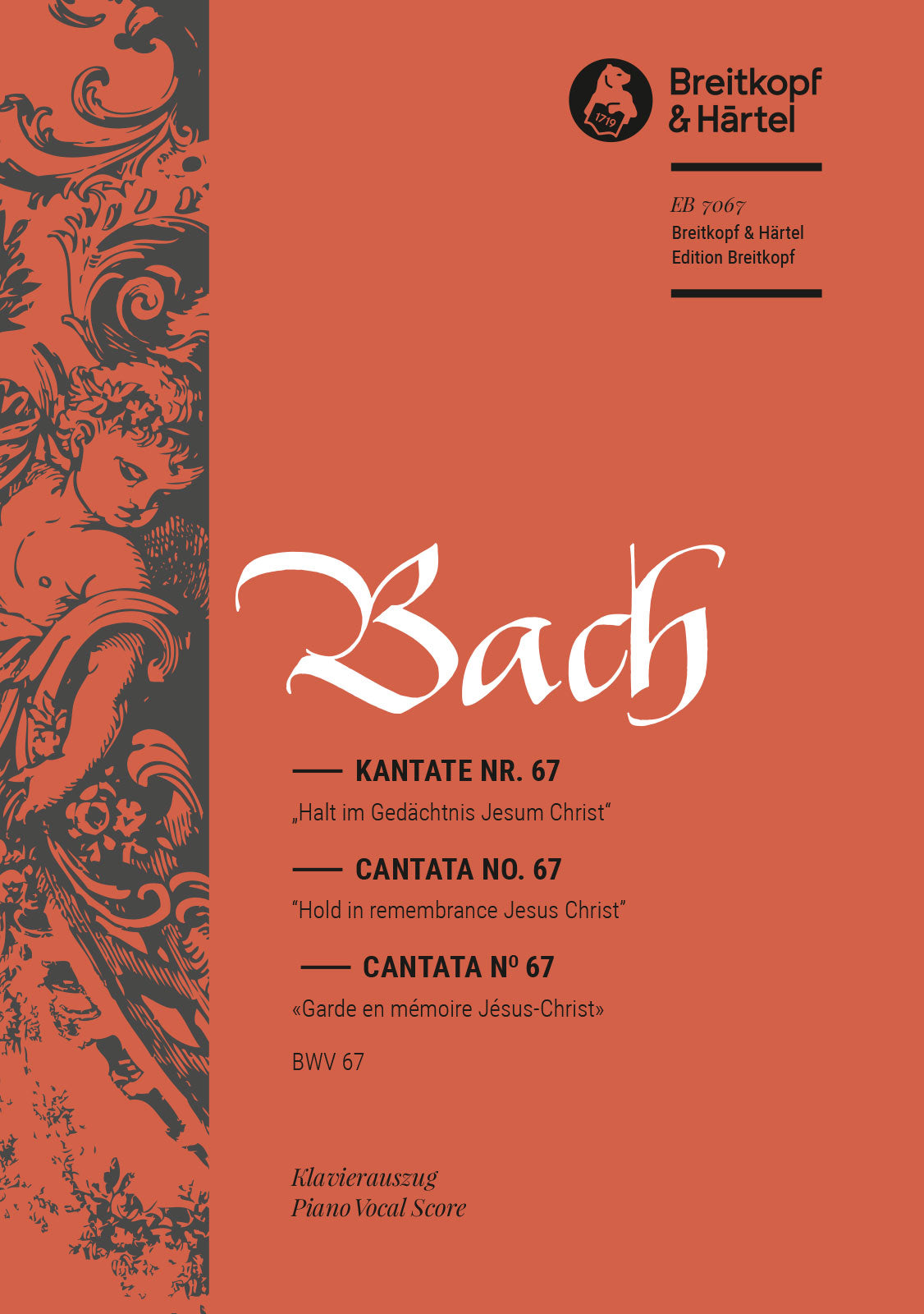 Cantata BWV 67 “Hold in remembrance Jesus Christ” | Quasimodogeniti [1st Sunday after Easter] | solos,mix ch,orch | solos: ATB – choir: SATB – 1.0.2ob d’am.0.0 – 0.1.0.0 – str – bc | Choir | Chorus | Chorus (with soloists) and piano | 15' | Baroque | Cantata | Piano/Vocal Score | piano vocal score | | Raphael, Günter (KA) | 36 | German / English / French | stapled | 19 x 27 cm