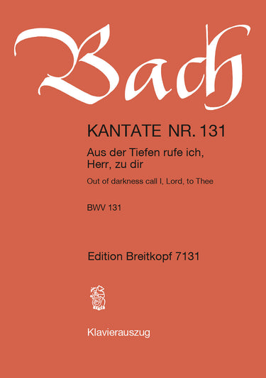Cantata BWV 131 “Out of darkness call I, Lord, to Thee” | solos,mix ch,orch | solos: SATB – choir: SATB – 0.1.0.1 – 0.0.0.0 – vI.va (divided).vc/db – bc | Choir | Chorus | Chorus (with soloists) and piano | 25' | Baroque | Cantata | Piano/Vocal Score | piano vocal score | | Raphael, Günter (KA) | 44 | German / English | stapled | 19 x 27 cm