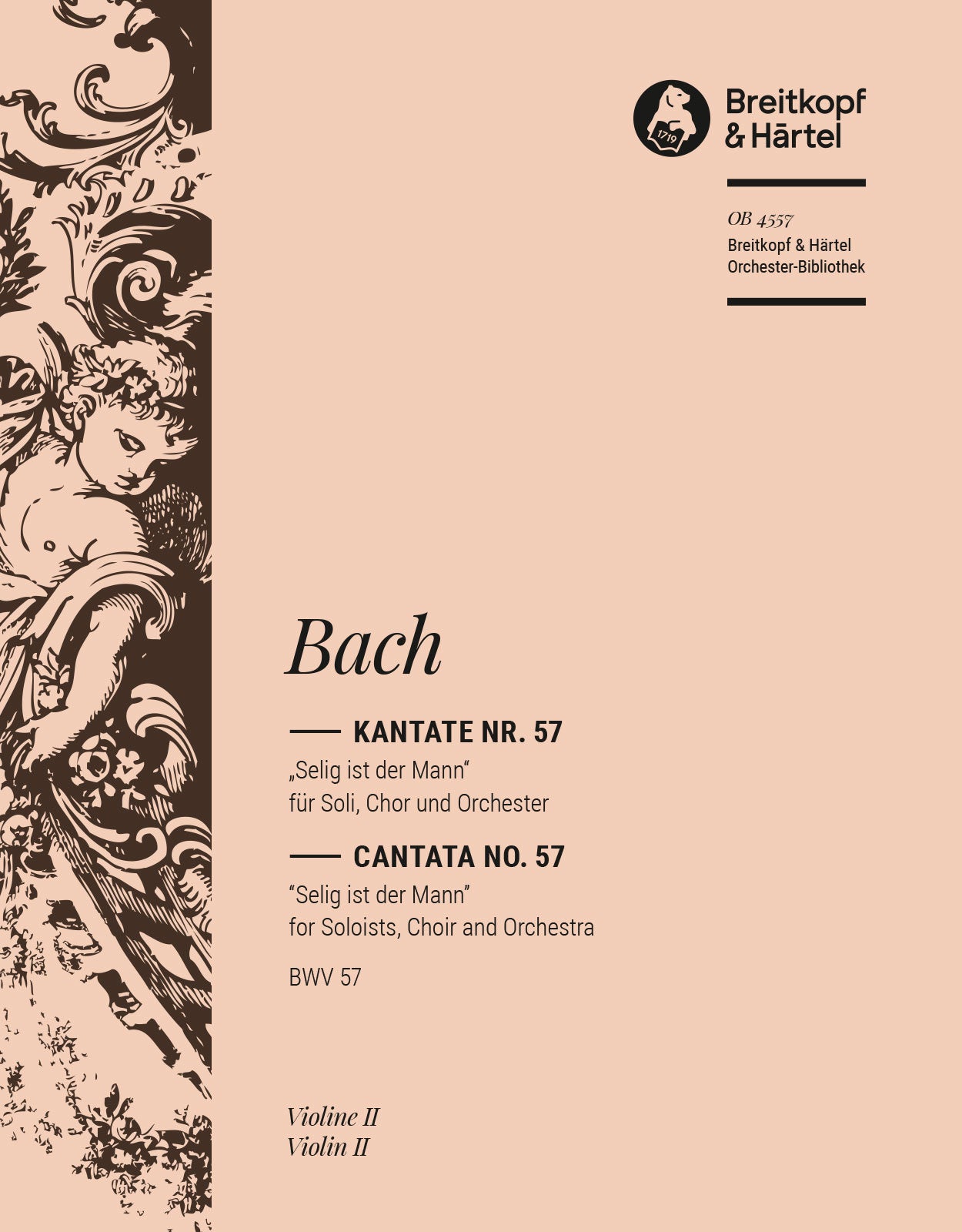 Cantata BWV 57 “Blessed is the man” | 2nd Day of Christmas [St. Stefanus Day] | S,B,mix ch,orch | solos: SB – choir: SATB – 0.2.ob.da cac.0.0 – 0.0.0.0 – str – bc | Choir | Chorus | Chorus (with soloists) and orchestra | 26' | Baroque | Cantata | Sheet Music | violin 2 | Rust, Wilhelm | | 4 | stapled | 25 x 32 cm