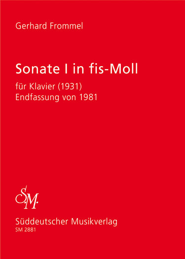 **Title**: Sonate I für Klavier (1931) fis-Moll | **Subtitle**: Endfassung von 1981 | **Composer / Author**: Frommel, Gerhard | **Editor**: Vogel, Johann Peter | **Edition Type**: Performance score | **Instrumentation**: Piano | **Scoring/ Instrumentation**: Piano | **Binding**: Stapled | **Duration**: 00:24:30 | **Printing**: 1. Aufl. 2009 | **Weight**: 160.0 g | **Format**: 30,0 x 23,0 cm | **Pages**: 37 S. | **Language**: EN | Sample: https://data.baerenreiter.com/NB/SM/SM02881_00_9790202119495_nb_lrg_01.jpg