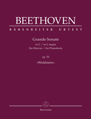 **Title**: Grande Sonate for Pianoforte in C major op. 53 "Waldstein" | **Composer / Author**: Beethoven, Ludwig van | **Editor**: Del Mar, Jonathan | **Preface**: Donat, Misha / Del Mar, Jonathan | **Edition Type**: Performance score, Urtext edition | **Instrumentation**: Piano | **Scoring/ Instrumentation**: Piano | **Binding**: Stapled | **Level of Difficulty**: 5.0 | **Printing**: 1st printing 2016 | **Weight**: 279.0 g | **Format**: 31,0 x 24,3 cm | **Pages**: XIX, 45 S. | **Language**: EN | Sample: https://data.baerenreiter.com/NB/BA/BA10856_00_9790006561902_nb_lrg_01.jpg