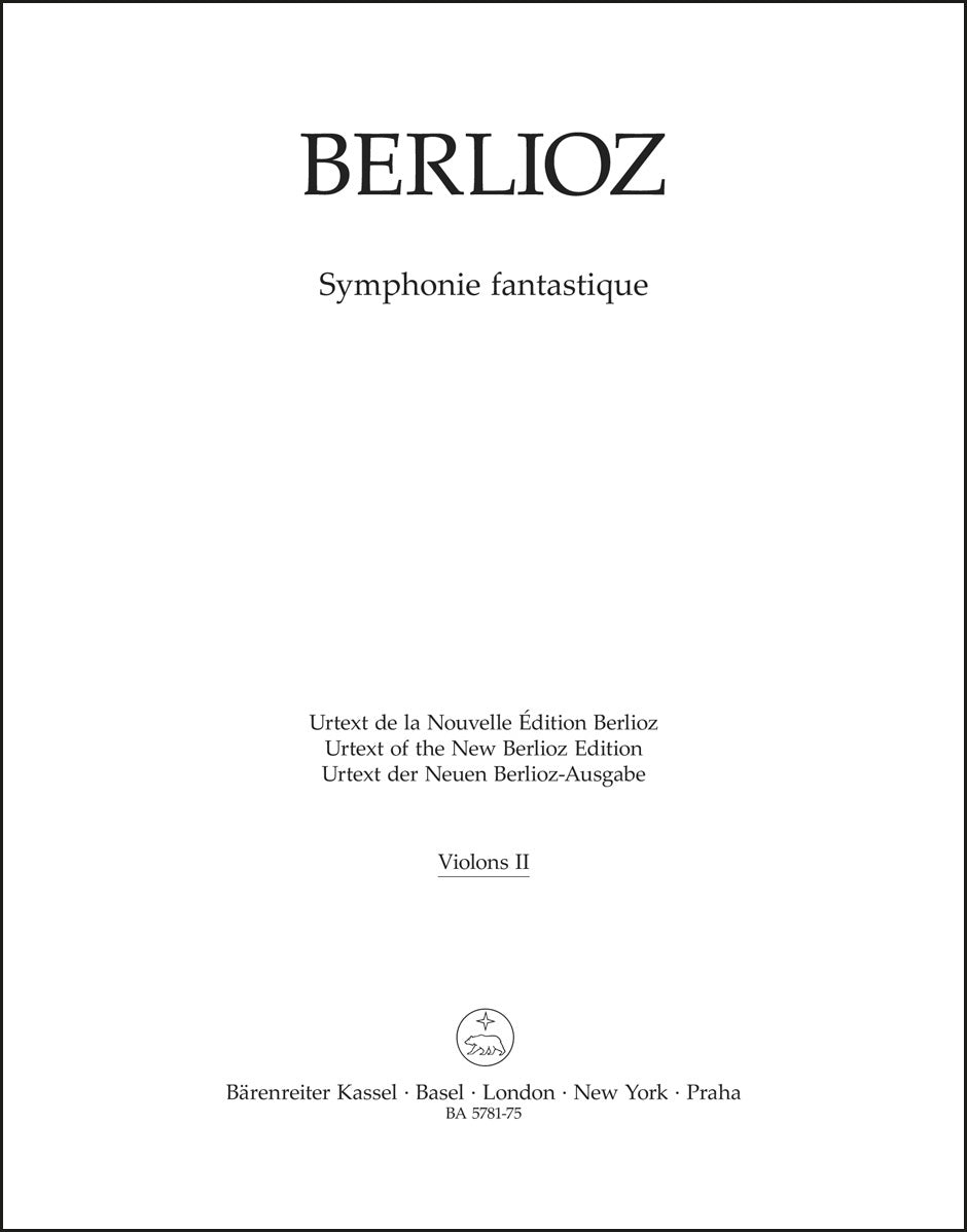 **Title**: Symphonie fantastique | **Composer / Author**: Berlioz, Hector | **Editor**: Temperley, Nicholas | **Edition Type**: Part, Urtext edition | **Scoring/ Instrumentation**: 2. Violin | **Binding**: Stapled | **Weight**: 104.0 g | **Format**: 32,5 x 25,5 cm | **Pages**: 24 S. | **Language**: EN | Sample: https://data.baerenreiter.com/NB/BA/BA05781_75_9790006473533_nb_lrg_01.jpg