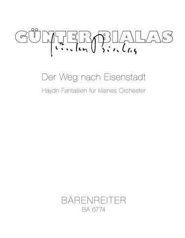 **Title**: Der Weg nach Eisenstadt für kleines Orchester (1980) | **Subtitle**: Haydn-Fantasien | **Composer / Author**: Bialas, Günter | **Edition Type**: Study score | **Instrumentation**: Small orchestra | **Binding**: Stapled | **Duration**: 00:16:00 | **Printing**: 2. Aufl. 2012 | **Weight**: 141.0 g | **Format**: 27,0 x 21,0 cm | **Pages**: 47 S. | **Language**: EN | Sample: https://data.baerenreiter.com/NB/BA/BA06774_00_9790006482566_nb_lrg_01.jpg