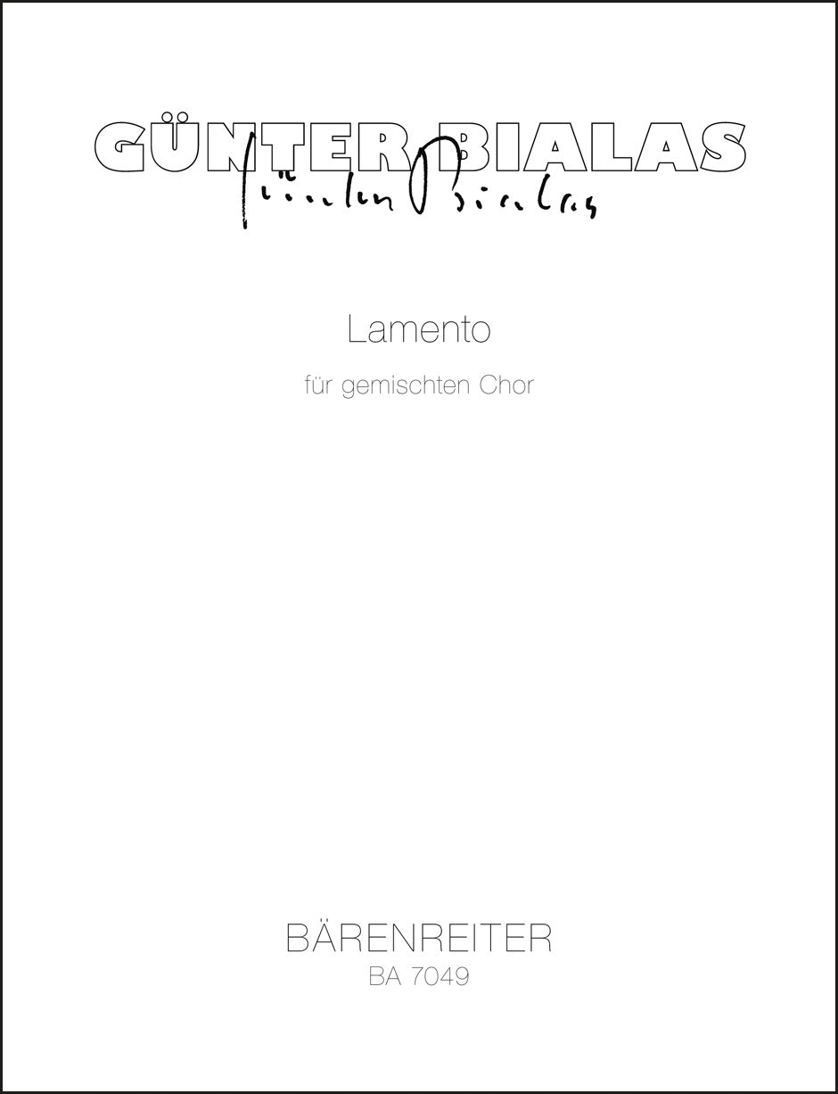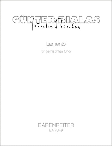 **Title**: Lamento (1986) | **Subtitle**: Lateinisch/italienischer Mischtext, Solisten aus dem Chor | **Misc Information**: In te Domine speravi | **Composer / Author**: Bialas, Günter | **Edition Type**: Choral score | **Instrumentation**: Choir | **Scoring/ Instrumentation**: Mixed choir (SATB) | **Binding**: Stapled | **Level of Difficulty**: 4.0 | **Language of Text Part**: Latin, Italian | **Weight**: 81.0 g | **Format**: 30,1 x 23,0 cm | **Pages**: 14 S. | **Language**: EN | Sample: https://data.baerenreiter.com/NB/BA/BA07049_00_9790006484744_nb_lrg_01.jpg
