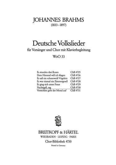 Deutsche Volkslieder WoO 33 | No. 48 Nachtigall, sag | mix ch,pno | Choir | Chorus | Chorus (with soloists) and piano | Romantic | Song | Sheet Music | choral score | | | 4 | 19 x 27 cm