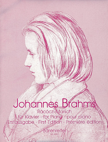 **Title**: Rácóczi-Marsch for Piano | **Subtitle**: First edition | **Composer / Author**: Brahms, Johannes | **Editor**: Töpel, Michael | **Edition Type**: Performance score | **Instrumentation**: Piano | **Scoring/ Instrumentation**: Piano | **Binding**: Stapled | **Level of Difficulty**: 5.0 | **Weight**: 64.0 g | **Format**: 30,0 x 23,0 cm | **Pages**: 9 S. | **Language**: EN | Sample: https://data.baerenreiter.com/NB/BA/BA06557_00_9790006498215_nb_lrg_01.jpg