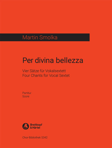 Per divina bellezza | 4 Chants for Vocal Sextet | mix ch | STTTBarB | Voice | Voice | Voice(s) solo | 2011 | 24' | Music post-1945 | New music (post-2000) | Sheet Music | full score | | | 52 | stapled | 23 x 30,5 cm