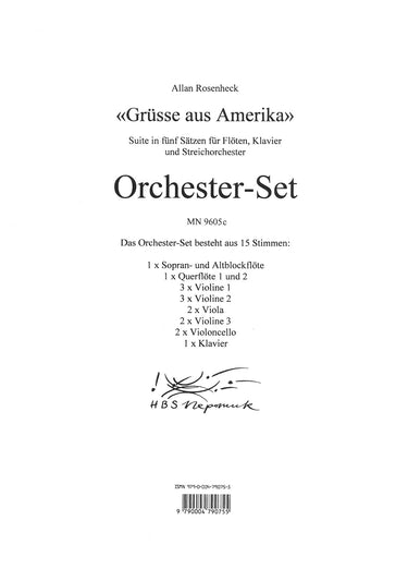 Grüsse aus Amerika | Suite in 5 Sätzen | students orch | 11' | Romantic | Music pedagogy | Sheet Music | set of parts | | | 94 | stapled | 21 x 29,7 cm