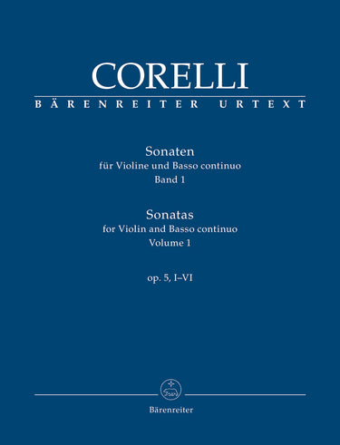 **Title**: Sonatas for Violin and Basso continuo op. 5, I-VI | **Misc Information**: Volume 1 | **Comments on Version**: With contemporary embellishments, and a keyboard realisation by Antonio Tonelli | **Composer / Author**: Corelli, Arcangelo | **Editor**: Hogwood, Christopher / Mark, Ryan | **Preface**: Hogwood, Christopher | **Edition Type**: Performance score, Set of parts, Anthology, Urtext edition | **Instrumentation**: Violin, Basso continuo | **Scoring/ Instrumentation**: Violin, Basso continuo | **Binding**: Paperback | **Level of Difficulty**: 4.0 | **Printing**: 2nd printing 2023 | **Weight**: 900.0 g | **Format**: 31,0 x 24,3 cm | **Pages**: XXIX, 90/29/39/22 S. | **Language**: EN | Sample: https://data.baerenreiter.com/NB/BA/BA09455_00_9790006535118_nb_lrg_01.jpg
