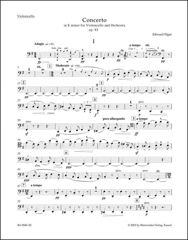 **Title**: Concerto for Violoncello and Orchestra in E minor op. 85 | **Composer / Author**: Elgar, Edward | **Editor**: Del Mar, Jonathan | **Edition Type**: Part, Urtext edition | **Scoring/ Instrumentation**: Violoncello | **Binding**: Stapled | **Weight**: 50.0 g | **Format**: 32,5 x 25,5 cm | **Pages**: 11 S. | **Language**: EN | Sample: https://data.baerenreiter.com/NB/BA/BA09040_82_9790006526925_nb_lrg_01.jpg