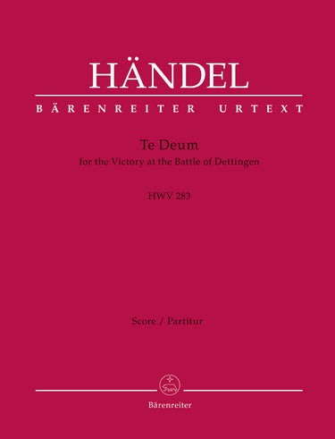 **Title**: Te Deum for the Victory at the Battle of Dettingen HWV 283 | **Composer / Author**: Handel, George Frideric | **Editor**: Babington, Amanda | **Preface**: Babington, Amanda | **Edition Type**: Score, Urtext edition | **Scoring/ Instrumentation**: Alto solo, Tenor solo, Bass solo, Mixed choir (SSATB), Orchestra | **Binding**: Paperback | **Level of Difficulty**: 3.0 | **Printing**: 1st printing 2016 | **Language of Text Part**: English | **Weight**: 638.0 g | **Format**: 31,0 x 24,3 cm | **Pages**: XIII, 140 S. | **Language**: EN | Sample: https://data.baerenreiter.com/NB/BA/BA10706_00_9790006544363_nb_lrg_01.jpg