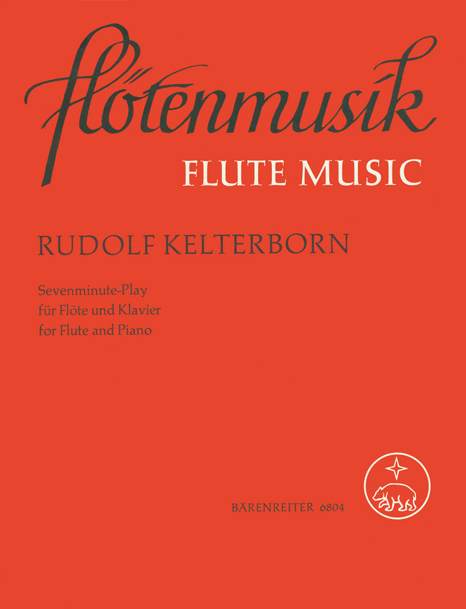 **Title**: Sevenminute-Play (1976) | **Comments**: Uraufführung 20.02.1977, New York | **Composer / Author**: Kelterborn, Rudolf | **Edition Type**: Performance score, Part | **Instrumentation**: Flute, Piano | **Scoring/ Instrumentation**: Flute, Piano | **Binding**: Stapled | **Weight**: 100.0 g | **Format**: 30,0 x 23,0 cm | **Pages**: 16/7 S. | **Language**: EN | Sample: https://data.baerenreiter.com/NB/BA/BA06804_00_9790006482757_nb_lrg_01.jpg