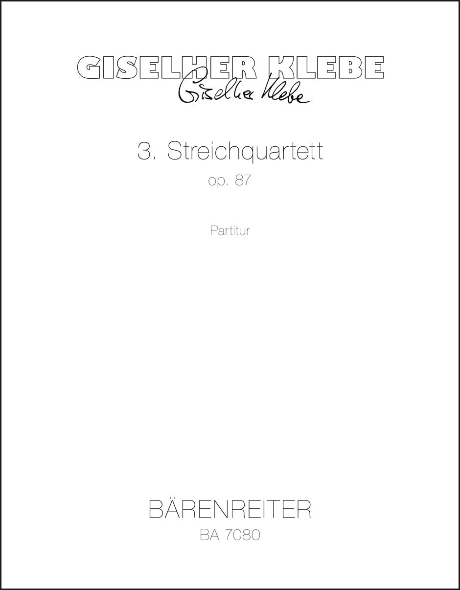 **Title**: Streichquartett no. 3 op. 87 (1981) | **Composer / Author**: Klebe, Giselher | **Edition Type**: Score | **Instrumentation**: String quartet | **Scoring/ Instrumentation**: String quartet | **Binding**: Stapled | **Weight**: 272.0 g | **Format**: 35,3 x 27,6 cm | **Pages**: 49 S. | **Language**: EN | Sample: https://data.baerenreiter.com/NB/BA/BA07080_00_9790006485130_nb_lrg_01.jpg