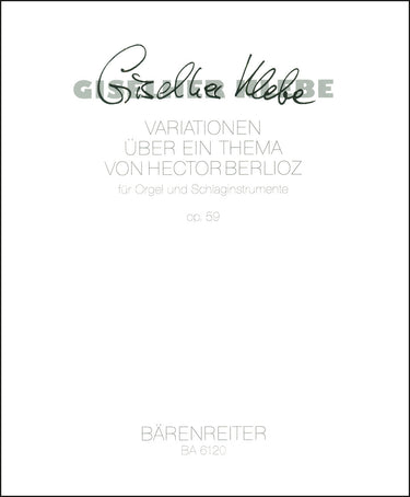 **Title**: Variationen on a Theme by Hector Berlioz op. 59 (1970) | **Composer / Author**: Klebe, Giselher | **Edition Type**: Performance score | **Scoring/ Instrumentation**: Organ, Drums (3) | **Binding**: Stapled | **Level of Difficulty**: 5.0 | **Weight**: 245.0 g | **Format**: 34,7 x 29,5 cm | **Pages**: 39 S. | **Language**: EN | Sample: https://data.baerenreiter.com/NB/BA/BA06120_00_9790006475810_nb_lrg_01.jpg