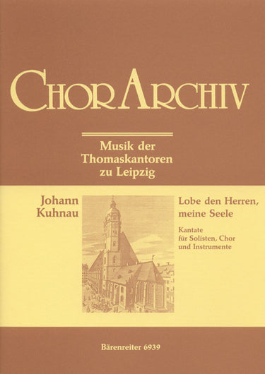 **Title**: Lobe den Herren, meine Seele | **Subtitle**: Psalm 103 | **Misc Information**: Musik der Thomaskantoren zu Leipzig | **Composer / Author**: Kuhnau, Johann | **Editor**: Rimbach, Evangeline | **Edition Type**: Score | **Scoring/ Instrumentation**: Vocal, Mixed choir, Orchestra | **Binding**: Paperback | **Level of Difficulty**: 3.0 | **Weight**: 103.0 g | **Format**: 27,0 x 19,0 cm | **Pages**: 39 S. | **Language**: EN | Sample: https://data.baerenreiter.com/NB/BA/BA06939_00_9790006483891_nb_lrg_01.jpg