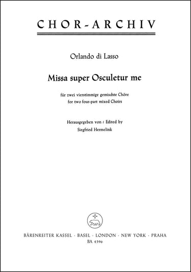 **Title**: Missa super Osculetur me for two four-part mixed Choirs | **Composer / Author**: Lasso, Orlando di | **Editor**: Hermelink, Siegfried | **Edition Type**: Choral score, Urtext edition | **Instrumentation**: Choir | **Scoring/ Instrumentation**: Mixed choirs (SATB) (2) | **Binding**: Stapled | **Level of Difficulty**: 3.0 | **Printing**: 7th printing 2019 | **Weight**: 103.0 g | **Format**: 27,0 x 19,0 cm | **Pages**: 40 S. | **Language**: EN | Sample: https://data.baerenreiter.com/NB/BA/BA04396_00_9790006447930_nb_lrg_01.jpg