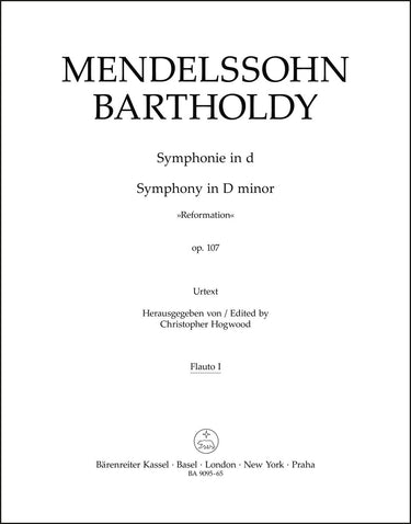 **Title**: Symphonie d-Moll op. 107 "Reformations-Symphonie" | **Composer / Author**: Mendelssohn Bartholdy, Felix | **Editor**: Hogwood, Christopher | **Edition Type**: Wind set, Urtext edition | **Scoring/ Instrumentation**: Flutes (2), Oboes (2), Clarinets (2), Bassoons (2), Contrabassoon, Serpent, Horns (2), Trumpets (2), 1. Tenor trombone, 1. Alto trombone, 2. Trombone, 3. Trombone, Timpani | **Binding**: Stapled | **Weight**: 648.0 g | **Format**: 32,5 x 25,5 cm | **Pages**: 11/11/9/9/11/11/10/10/4/8/8/6/7/3/3/3/3/7 | **Language**: EN | Sample: https://data.baerenreiter.com/NB/BA/BA09095_65_9790006535293_nb_lrg_01.jpg