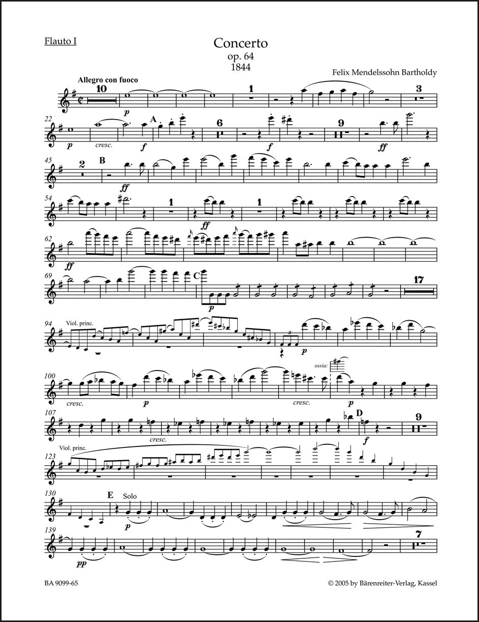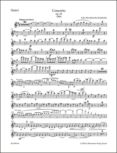 **Title**: Concerto for Violin and Orchestra in E minor op. 64 | **Comments**: Replaces BA 9050-65 | **Composer / Author**: Mendelssohn Bartholdy, Felix | **Editor**: Todd, R. Larry | **Edition Type**: Wind set, Urtext edition | **Scoring/ Instrumentation**: Flutes (2), Oboes (2), Clarinets (2), Bassoons (2), Horns (2), Trumpets (2), Timpani | **Binding**: Stapled | **Weight**: 563.0 g | **Format**: 32,5 x 25,5 cm | **Pages**: 12/8/10/8/14/12/12/10/8/8/6/6/6 S. | **Language**: EN | Sample: https://data.baerenreiter.com/NB/BA/BA09099_65_9790006565672_nb_lrg_01.jpg