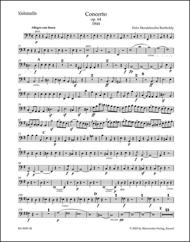 **Title**: Concerto for Violin and Orchestra in E minor op. 64 | **Comments**: Replaces BA 9050-82 | **Composer / Author**: Mendelssohn Bartholdy, Felix | **Editor**: Todd, R. Larry | **Edition Type**: Part, Urtext edition | **Scoring/ Instrumentation**: Violoncello | **Binding**: Stapled | **Weight**: 68.0 g | **Format**: 32,5 x 25,5 cm | **Pages**: 16 S. | **Language**: EN | Sample: https://data.baerenreiter.com/NB/BA/BA09099_82_9790006565719_nb_lrg_01.jpg
