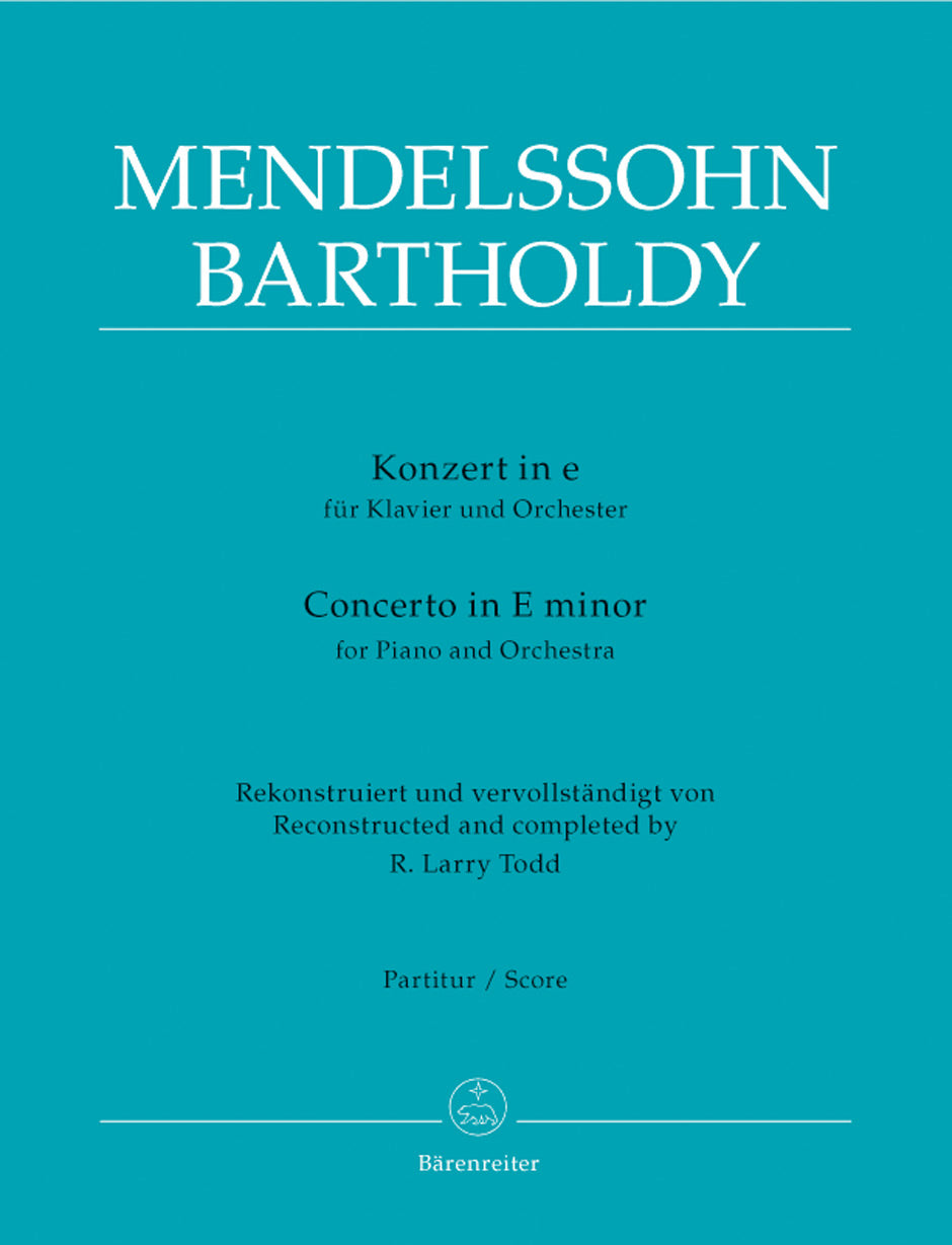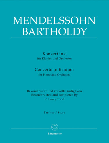**Title**: Concerto for Piano and Orchestra in E minor | **Subtitle**: Reconstructed and completed by R. Larry Todd | **Composer / Author**: Mendelssohn Bartholdy, Felix | **Edition Type**: Score | **Instrumentation**: Piano, Orchestra | **Scoring/ Instrumentation**: Piano, Orchestra | **Binding**: Paperback | **Duration**: 00:26:00 | **Printing**: 1st printing 2008 | **Weight**: 517.0 g | **Format**: 31,0 x 24,3 cm | **Pages**: XIII, 121 S. | **Language**: EN | Sample: https://data.baerenreiter.com/NB/BA/BA09081_00_9790006537815_nb_lrg_01.jpg