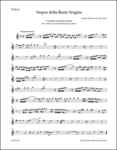 **Title**: Vespro della Beata Vergine "Marienvesper" | **Composer / Author**: Monteverdi, Claudio | **Editor**: Schulze, Hendrik | **Edition Type**: Part, Urtext edition | **Scoring/ Instrumentation**: 1. Violin | **Binding**: Stapled | **Weight**: 70.0 g | **Format**: 32,5 x 25,5 cm | **Pages**: 15 S. | **Language**: EN | Sample: https://data.baerenreiter.com/NB/BA/BA08794_74_9790006529070_nb_lrg_01.jpg
