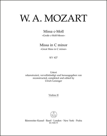 **Title**: Missa in C minor K. 427 "Great Mass in C minor" | **Comments on Version**: Reconstructed and completed by Ulrich Leisinger | **Composer / Author**: Mozart, Wolfgang Amadeus | **Editor**: Leisinger, Ulrich | **Edition Type**: Part, Urtext edition | **Scoring/ Instrumentation**: 2. Violin | **Binding**: Stapled | **Weight**: 118.0 g | **Format**: 32,5 x 25,5 cm | **Pages**: 25 S. | **Language**: EN | Sample: https://data.baerenreiter.com/NB/BA/BA09188_75_9790006565153_nb_lrg_01.jpg