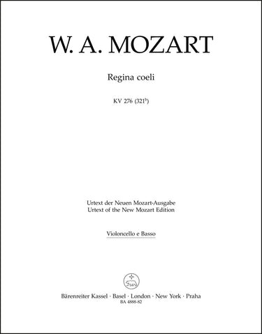 **Title**: Regina coeli in C major K. 276 (321b) | **Composer / Author**: Mozart, Wolfgang Amadeus | **Editor**: Federhofer, Hellmut | **Edition Type**: Part, Urtext edition | **Scoring/ Instrumentation**: Violoncello, Double bass | **Binding**: Stapled | **Duration**: 00:07:00 | **Weight**: 33.0 g | **Format**: 32,5 x 25,5 cm | **Pages**: 5 S. | **Language**: EN | Sample: https://data.baerenreiter.com/NB/BA/BA04888_82_9790006459230_nb_lrg_01.jpg
