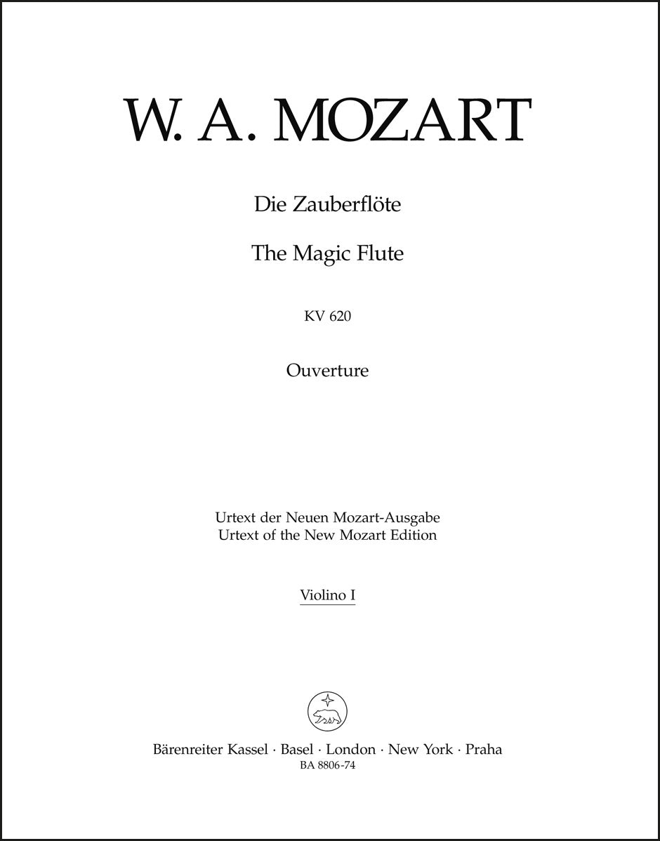 **Title**: The Magic Flute K. 620 | **Subtitle**: Overture | **Composer / Author**: Mozart, Wolfgang Amadeus | **Editor**: Orel, Alfred | **Edition Type**: Part, Urtext edition | **Scoring/ Instrumentation**: 1. Violin | **Binding**: Stapled | **Duration**: 00:07:00 | **Weight**: 18.0 g | **Format**: 32,5 x 25,5 cm | **Pages**: 4 S. | **Language**: EN | Sample: https://data.baerenreiter.com/NB/BA/BA08806_74_9790006524709_nb_lrg_01.jpg