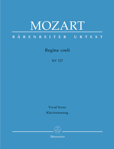 **Title**: Regina coeli in B-flat major K. 127 | **Composer / Author**: Mozart, Wolfgang Amadeus | **Arranger**: Köhs, Andreas | **Editor**: Federhofer, Hellmut | **Edition Type**: Vocal Score, Urtext edition | **Binding**: Stapled | **Level of Difficulty**: 3.0 | **Duration**: 00:16:00 | **Printing**: 3rd printing 2019 | **Weight**: 109.0 g | **Format**: 27,0 x 19,0 cm | **Pages**: 28 S. | **Language**: EN | Sample: https://data.baerenreiter.com/NB/BA/BA04887_90_9790006459162_nb_lrg_01.jpg