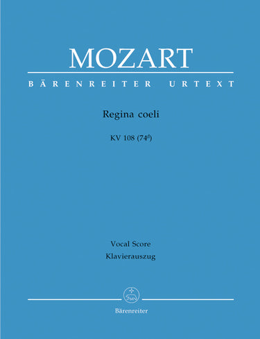 **Title**: Regina coeli in C major K. 108 (74d) | **Composer / Author**: Mozart, Wolfgang Amadeus | **Arranger**: Köhs, Andreas | **Editor**: Federhofer, Hellmut | **Edition Type**: Vocal Score, Urtext edition | **Binding**: Stapled | **Level of Difficulty**: 3.0 | **Duration**: 00:12:00 | **Printing**: 4th printing 2020 | **Language of Text Part**: Latin | **Weight**: 111.0 g | **Format**: 27,0 x 19,0 cm | **Pages**: 26 S. | **Language**: EN | Sample: https://data.baerenreiter.com/NB/BA/BA04886_90_9790006459070_nb_lrg_01.jpg