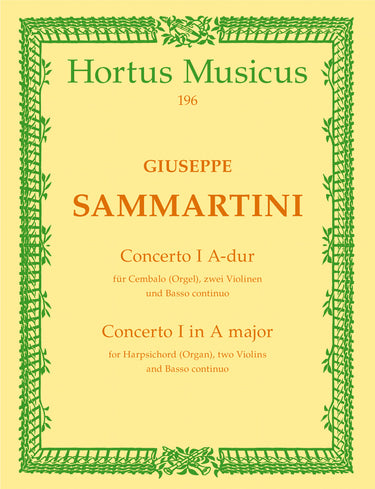 **Title**: Concerto für Cembalo oder Orgel, zwei Violinen und Basso continuo A-Dur | **Subtitle**: Part m St | **Composer / Author**: Sammartini, Giovanni Battista | **Editor**: Illy, Hedda | **Edition Type**: Score, Set of parts | **Scoring/ Instrumentation**: Harpsichord, Organ, Violins (2), Basso continuo | **Binding**: Stapled | **Level of Difficulty**: 4.0 | **Weight**: 226.0 g | **Format**: 29,0 x 21,2 cm | **Pages**: 40/7/7/7 S. | **Language**: EN | Sample: https://data.baerenreiter.com/NB/HM/HM00196_00_9790006003938_nb_lrg_01.jpg