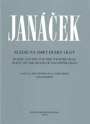 **Title**: Elegie auf den Tod der Tochter Olga | **Subtitle**: Kantate für Tenor solo, gemischten Chor und Klavier | **Composer / Author**: Janácek, Leoš | **Edition Type**: Choral score | **Scoring/ Instrumentation**: Tenor solo, Mixed choir (SATB), Piano | **Weight**: 100.0 g | **Format**: 26,0 x 19,0 cm | **Pages**: 24 S. | **Language**: EN | Sample: https://data.baerenreiter.com/NB/H/H02572_00_9790260101425_nb_lrg_01.jpg