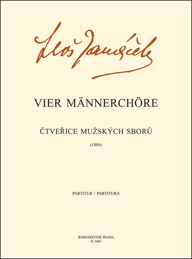 **Title**: Four Pieces for Male Choir | **Composer / Author**: Janácek, Leoš | **Edition Type**: Choral score | **Instrumentation**: Male choir | **Scoring/ Instrumentation**: Male choir:TTBB | **Binding**: Stapled | **Language of Text Part**: German | **Weight**: 32.0 g | **Format**: 27,3 x 19,7 cm | **Pages**: 9 S. | **Language**: EN | Sample: https://data.baerenreiter.com/NB/H/H02486_00_9790260109643_nb_lrg_01.jpg