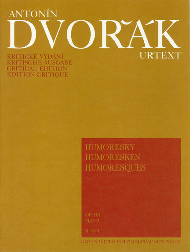 **Title**: Humoresques op. 101 | **Composer / Author**: Dvorak, Antonin | **Edition Type**: Performance score | **Instrumentation**: Piano | **Scoring/ Instrumentation**: Piano | **Binding**: Stapled | **Weight**: 192.0 g | **Format**: 31,0 x 23,5 cm | **Language**: EN | Sample: https://data.baerenreiter.com/NB/H/H01274_00_9790260106239_nb_lrg_01.jpg