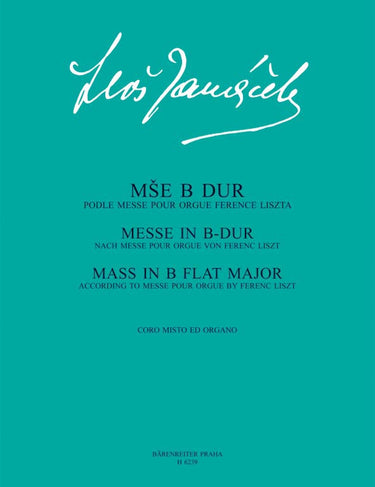 **Title**: Messe B-Dur | **Misc Information**: nach Messe pour orgue von Ferenc Liszt | **Composer / Author**: Janácek, Leoš | **Edition Type**: Choral score | **Instrumentation**: Choir, Organ | **Scoring/ Instrumentation**: Mixed choir (SATB), Organ | **Weight**: 100.0 g | **Format**: 28,0 x 20,0 cm | **Pages**: 27 S. | **Language**: EN | Sample: https://data.baerenreiter.com/NB/H/H06239_00_9790260105249_nb_lrg_01.jpg