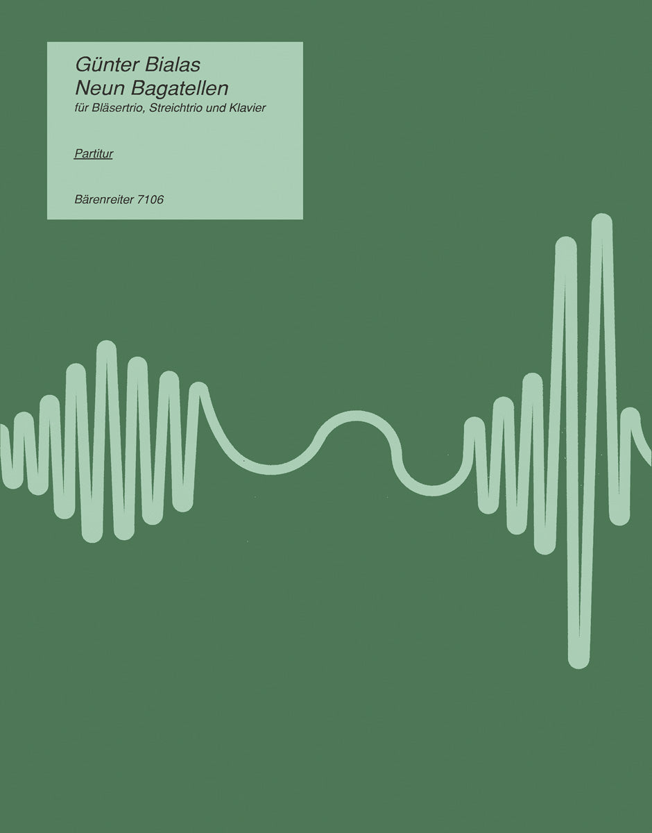 **Title**: Neun Bagatellen für Bläsertrio, Streichtrio und Klavier (1984) | **Composer / Author**: Bialas, Günter | **Edition Type**: Score | **Scoring/ Instrumentation**: Flute, Oboe, Clarinet, Violin, Viola, Violoncello, Piano | **Binding**: Stapled | **Weight**: 322.0 g | **Pages**: 33 S. | **Language**: EN | Sample: https://data.baerenreiter.com/NB/BA/BA07106_00_9790006485383_nb_lrg_01.jpg
