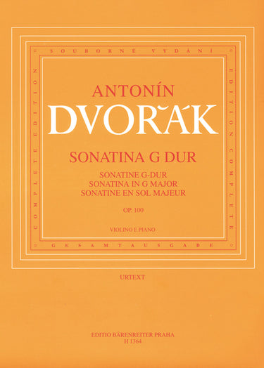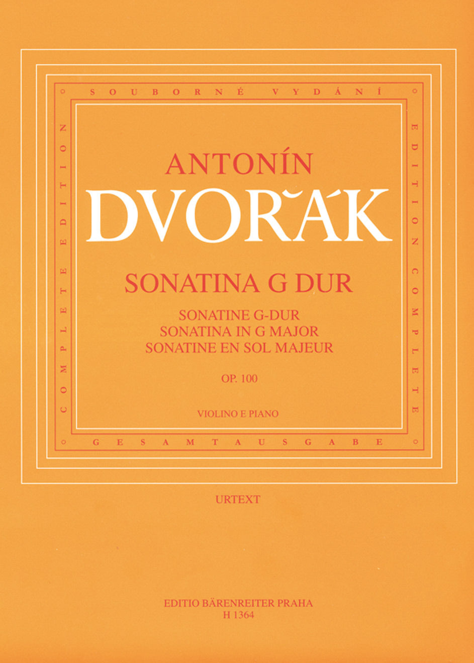 **Title**: Sonatina for Violin and Piano in G major op. 100 | **Composer / Author**: Dvorak, Antonin | **Edition Type**: Performance score, Part | **Instrumentation**: Violin, Piano | **Scoring/ Instrumentation**: Violin, Piano | **Binding**: Stapled | **Weight**: 226.0 g | **Format**: 31,0 x 23,5 cm | **Pages**: 40/8 S. | **Language**: EN | Sample: https://data.baerenreiter.com/NB/H/H01364_00_9790260103894_nb_lrg_01.jpg