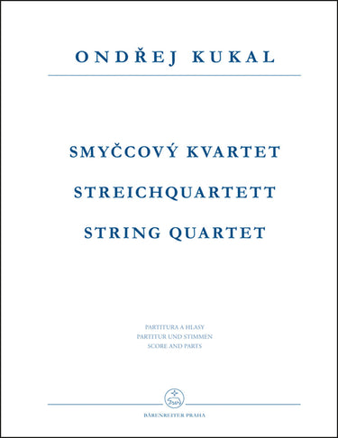 **Title**: String Quartet | **Composer / Author**: Kukal, Ondrej | **Edition Type**: Performance score, Set of parts | **Instrumentation**: String quartet | **Scoring/ Instrumentation**: Violins (2), Viola, Violoncello | **Binding**: Stapled | **Weight**: 338.0 g | **Format**: 31,0 x 23,5 cm | **Pages**: 43/12/12/11/11 S. | **Language**: EN | Sample: https://data.baerenreiter.com/NB/H/H07958_00_9790260104334_nb_lrg_01.jpg