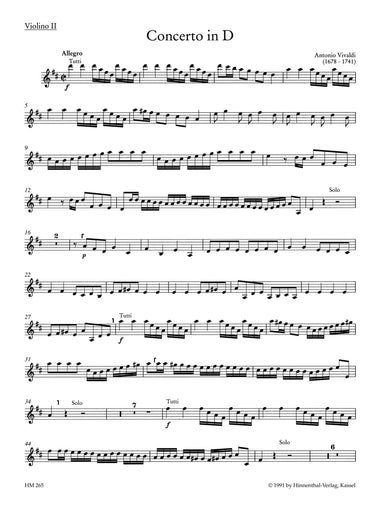 **Title**: Konzert für Querflöte, Streicher und Basso continuo D-Dur RV 783 | **Subtitle**: Flötenkonzert | **Composer / Author**: Vivaldi, Antonio | **Editor**: Gronefeld, Ingo | **Edition Type**: Part | **Scoring/ Instrumentation**: 2. Violin | **Binding**: Stapled | **Weight**: 12.0 g | **Format**: 30,0 x 22,7 cm | **Pages**: 3 S. | **Language**: EN | Sample: https://data.baerenreiter.com/NB/HM/HM00265_75_9790006005048_nb_lrg_01.jpg