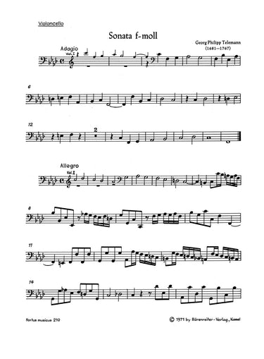 **Title**: Sonate für 2 Violinen, 2 Violen, Violoncello und Basso continuo f-Moll TWV 44:32 | **Subtitle**: Sextett | **Composer / Author**: Telemann, Georg Philipp | **Editor**: Hofmann, Klaus | **Edition Type**: Part | **Instrumentation**: String sextet | **Scoring/ Instrumentation**: Violoncello | **Binding**: Folded | **Weight**: 13.0 g | **Format**: 29,5 x 23,0 cm | **Pages**: 5 S. | **Language**: EN | Sample: https://data.baerenreiter.com/NB/HM/HM00210_82_9790006004195_nb_lrg_01.jpg