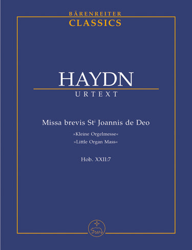 **Title**: Missa brevis St. Joannis de Deo Hob. XXII:7 "Kleine Orgelmesse" | **Comments on Version**: Urtext aus/from: Joseph Haydn Werke, G. Henle Verlag München | **Composer / Author**: Haydn, Joseph | **Editor**: Landon, H. C. Robbins / Füssl, Karl Heinz / Landon, Christa | **Edition Type**: Study score, Urtext edition | **Binding**: Paperback | **Level of Difficulty**: 3.0 | **Printing**: 9. Aufl. 2008 | **Weight**: 71.0 g | **Format**: 22,5 x 16,5 cm | **Pages**: 25 S. | **Language**: EN | Sample: https://data.baerenreiter.com/NB/TP/TP00095_00_9790006200764_nb_lrg_01.jpg