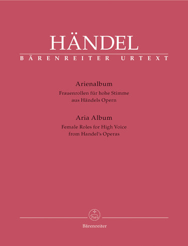 **Title**: Aria Albums from Handel's Operas | **Subtitle**: Female Roles for High Voice | **Composer / Author**: Handel, George Frideric | **Editor**: Burrows, Donald | **Edition Type**: Vocal Score, Anthology, Urtext edition | **Instrumentation**: Soprano, Piano | **Binding**: Paperback | **Printing**: 5th printing 2019 | **Language of Text Part**: Italian | **Weight**: 390.0 g | **Format**: 30,0 x 23,0 cm | **Pages**: XV, 85 S. | **Language**: EN | Sample: https://data.baerenreiter.com/NB/BA/BA04295_00_9790006537273_nb_lrg_01.jpg