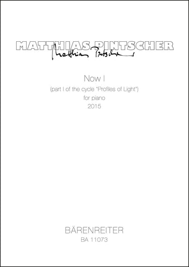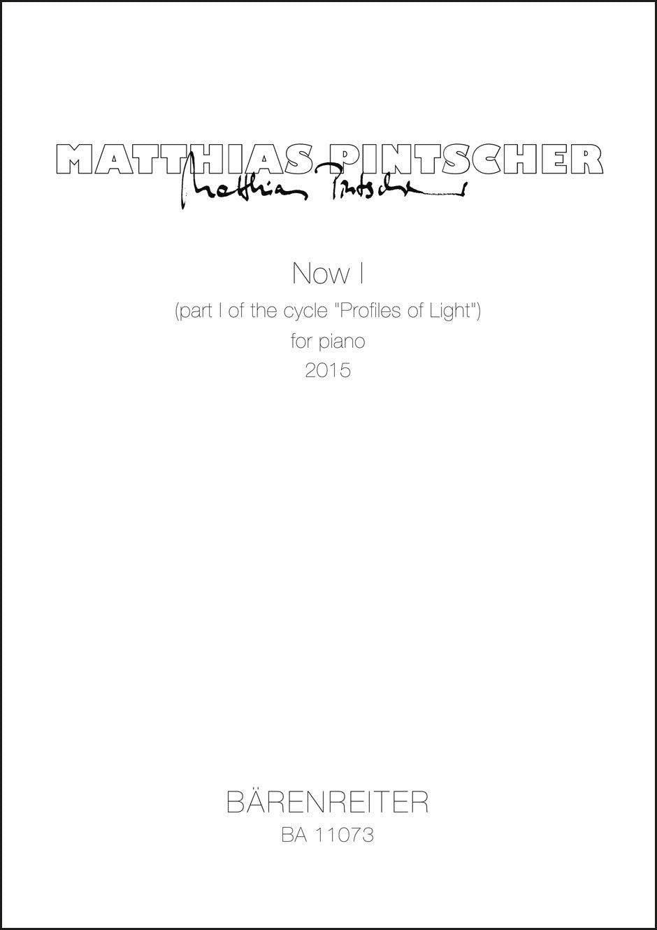 **Title**: Now I for piano (2015) | **Misc Information**: part I of the cycle "Profiles of Light" | **Composer / Author**: Pintscher, Matthias | **Edition Type**: Performance score | **Instrumentation**: Piano | **Scoring/ Instrumentation**: Piano | **Binding**: in a folder | **Level of Difficulty**: 5.0 | **Printing**: 4th printing 2018 | **Weight**: 113.0 g | **Format**: 42,0 x 29,6 cm | **Pages**: 6 S. | **Language**: EN | Sample: https://data.baerenreiter.com/NB/BA/BA11073_00_9790006562084_nb_lrg_01.jpg