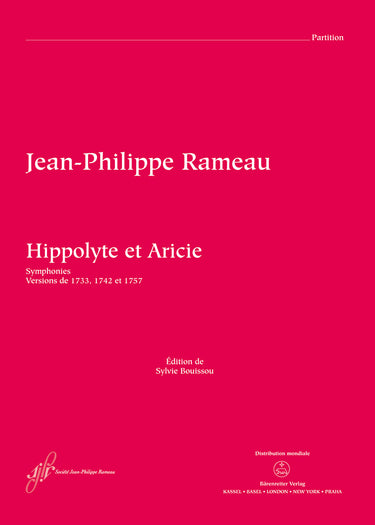 **Title**: Hippolyte et Aricie RCT 43 | **Subtitle**: Tragédie in five acts | **Misc Information**: Symphonien / Fassungen von 1733, 1742 und 1757 | **Composer / Author**: Rameau, Jean-Philippe | **Editor**: Bouissou, Sylvie | **Edition Type**: Score, Anthology, Urtext edition | **Instrumentation**: Orchestra | **Scoring/ Instrumentation**: Orchestra | **Binding**: Paperback | **Printing**: 1st printing 2021 | **Weight**: 378.0 g | **Format**: 33,0 x 24,0 cm | **Pages**: VI, 76 S. | **Language**: EN | Sample: https://data.baerenreiter.com/NB/BA/BA08896_00_9790006574926_nb_lrg_01.jpg