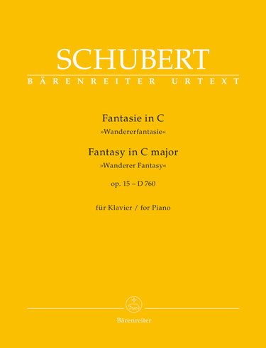 **Title**: Fantasy for Piano in C major op. 15 D 760 "Wanderer Fantasy" | **Comments**: Replaces BA 5640 | **Composer / Author**: Schubert, Franz | **Editor**: Dürr, Walther | **Preface**: Dürr, Walther | **Edition Type**: Performance score, Urtext edition | **Instrumentation**: Piano | **Scoring/ Instrumentation**: Piano | **Binding**: Stapled | **Level of Difficulty**: 6.0 | **Printing**: 3rd printing 2022 | **Weight**: 235.0 g | **Format**: 31,0 x 24,3 cm | **Pages**: XIV/38 S. | **Language**: EN | Sample: https://data.baerenreiter.com/NB/BA/BA10870_00_9790006525829_nb_lrg_01.jpg