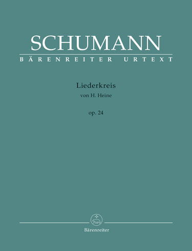 **Title**: Song Cycle op. 24 | **Composer / Author**: Schumann, Robert | **Libretto/Text by**: Heine, Heinrich | **Editor**: Ewert, Hansjörg | **Preface**: Ewert, Hansjörg | **Edition Type**: Singing Score, Urtext edition | **Instrumentation**: Singing voice, Piano | **Scoring/ Instrumentation**: Singing voice, Piano | **Binding**: Stapled | **Printing**: 1st printing 2012 | **Language of Text Part**: German | **Weight**: 175.0 g | **Format**: 30,0 x 23,0 cm | **Pages**: XI, 29 S. | **Language**: EN | Sample: https://data.baerenreiter.com/NB/BA/BA07852_00_9790006539673_nb_lrg_01.jpg