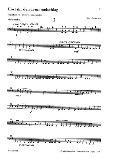 Hört Ihr den Trommelschlag | Vartiations for String Orchestra | str orch | Orchestra | Orchestra | String orchestra | 11' | Music post-1945 | Variations | Sheet Music | double bass | | | 4 | stapled | 0 x 0 cm